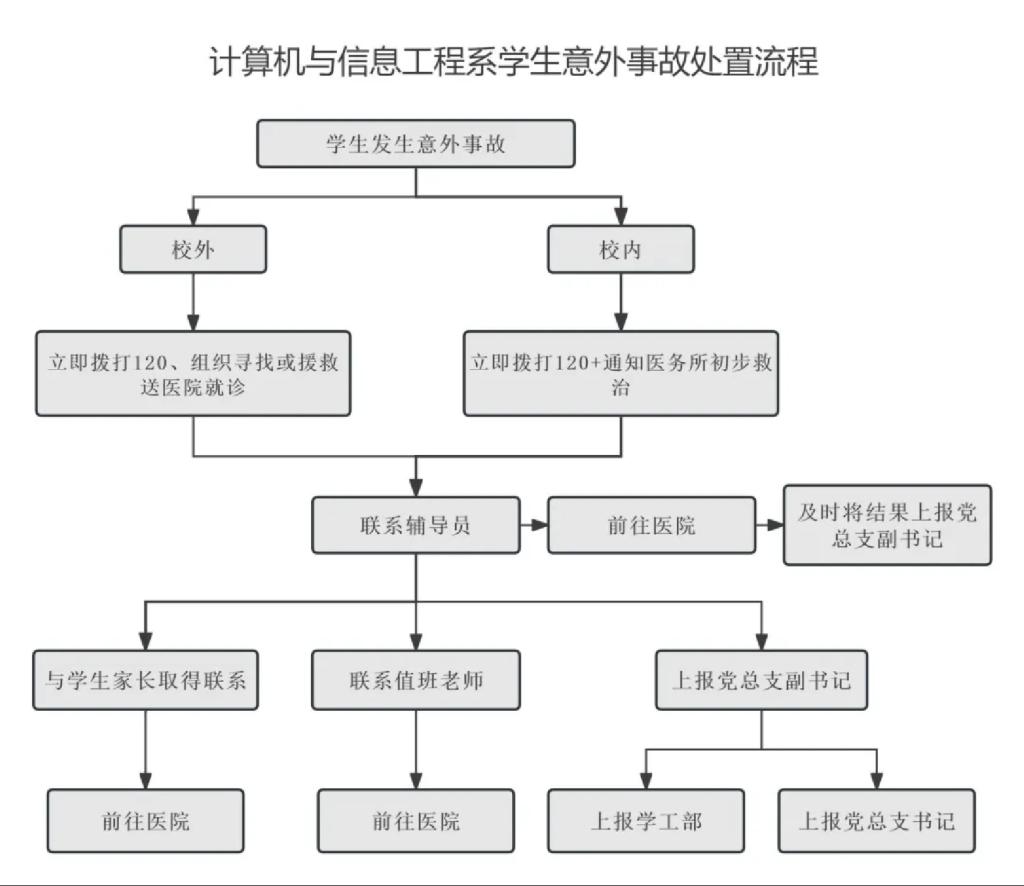 近日同学们课外活动和外出行程增多,请同学们注意人身安全和财产安全(关闭免密支付和设置手机锁屏),树立正确交友观,查寝后不再外出,遇到意外事件要第一时间联系辅导员。我系特制定《学生发生意外事故处置流程》《查寝未归学生处置流程》供同学们参考。