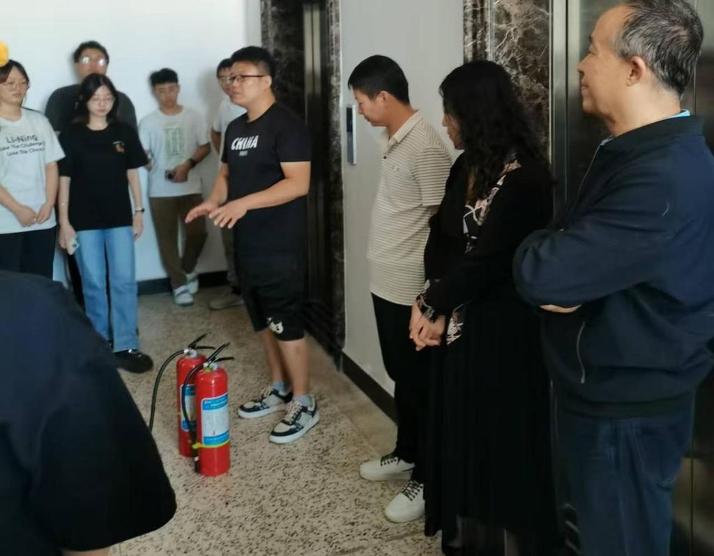 疏散结束后,王乔老师为大家进行了专业的灭火器培训教学,详细介绍了灭火器的种类、使用方法及注意事项,并现场演示了灭火器的正确操作。张永生老师还结合本次演习活动,向同学们普及了消防安全知识,强调了预防火灾的重要性,介绍了火场逃生的基本原则和技巧。