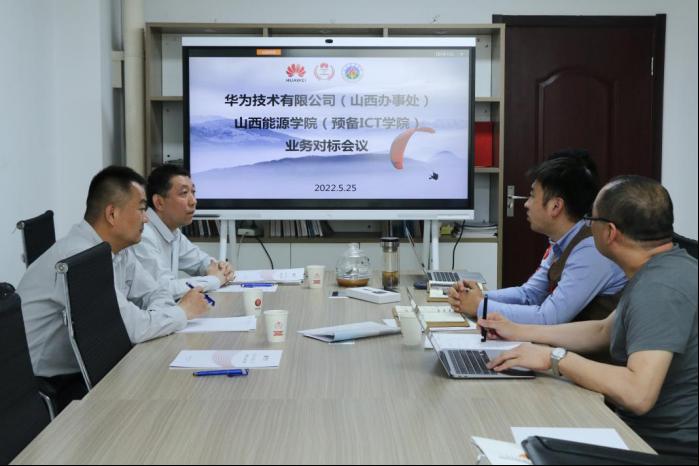 2022年5月,bat365中文官方网站与华为技术有限公司、山西百思为科技有限公司进行对标会议,双方针对建立预备华为ICT学院校企融合合作模式进行深入探讨;