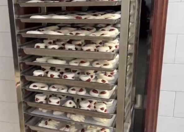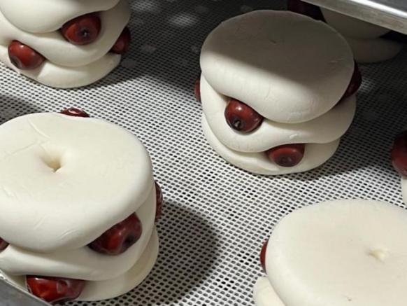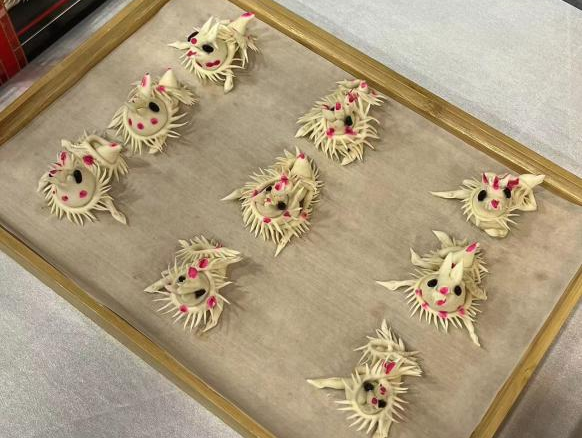 在体验过程中,队员们向当地花馍制作者了解了花馍的制作技巧,更深刻体会到了花馍背后所蕴含的丰富文化内涵和民间艺术魅力。他们了解到,制作霍州年馍需提前做好准备工作:买枣、洗枣、蒸枣,洗锅、盔、蒸具、簸箩,准备各色豆子、各种工具。其次,在蒸馍前一夜,按照祖辈传承的方法,把“面引子”先发好,在一定的气温下进行,发酵好的面粉配上一定比例的干面粉,加水开始和面,和好的面压成厚厚的面片,再把面片分成相等的小块,每块面过磅保证重量均衡,再把面用手压平,给面加压,再放入分团机里,出来的面团整齐均匀,最后经过人工揉搓就成了漂亮的花馍,主要种类有登高馍、枣花馍、花型馍、手馍、兔馍等。
