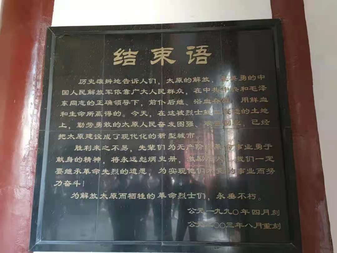 走进解放太原战役纪念馆,通过珍藏的先烈遗物、英雄事迹展板以及宣讲员的讲解,大家再次认真感受了这段浴血奋战的历史。接着来到烈士陵园,师生共同向烈士墓碑献花,并认真擦拭每块墓碑。在纪念堂内,同学们看着墙上篆刻的烈士姓名,久久不肯离去,以表对革命先烈的哀悼。在徐向前元帅雕像前驻立瞻仰,缅怀老一辈革命家为无产阶级革命事业勇于献身的精神。
