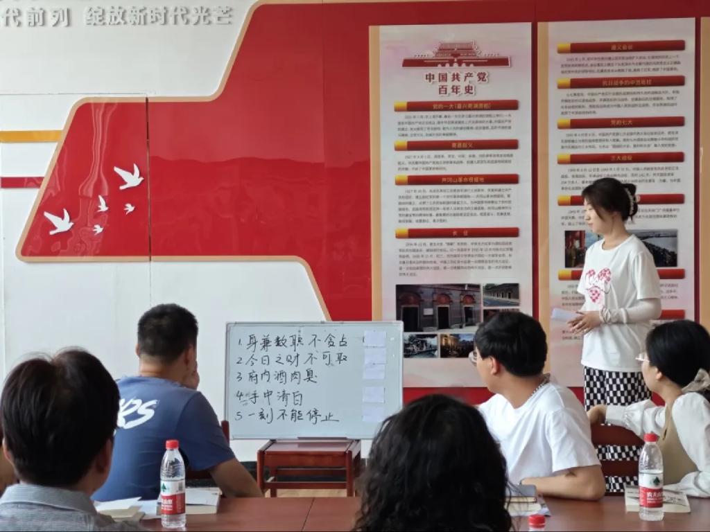 在阅读分享环节中,蔚晨月老师分享了张桂梅的故事:张桂梅老师将她的一生都奉献给了大山深处。她坚守初心,无私奉献,用实际行动诠释了共产党员的廉洁与担当。她的故事激励我们,无论身处何种环境,都应保持廉洁自律,为党和人民的事业贡献自己的力量。
