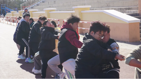 少年联臂登场,勇士陈力就列。各队伍斗志昂扬,随着比赛一声哨响,同学们铆足劲、拉紧绳,倾全力于一身,集合力于一绳,齐力奋战。