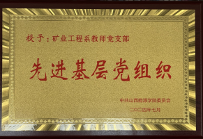 矿业工程系党总支在学院党委的领导下,政治坚定、履职尽责、担当作为,以求真务实的态度和清正廉洁的作风,认真履行职责,不断加强理论学习、更新思想观念,全面落实基层党建工作重点任务,扎实推进党支部标准化建设;在疫情防控、学院改革发展和维护校园稳定工作中,充分发挥党员先锋模范作用。矿业工程系党总支曾获得校级(含)以上党组织的重要表彰7次,2022年矿业工程系党总支“搭建‘12345’学生党建+思政生态德育模式”案例入选2022年度山西省“教育系统党建创新案例”、2020年被评选为bat365中文官方网站“党建工作标杆系部”。