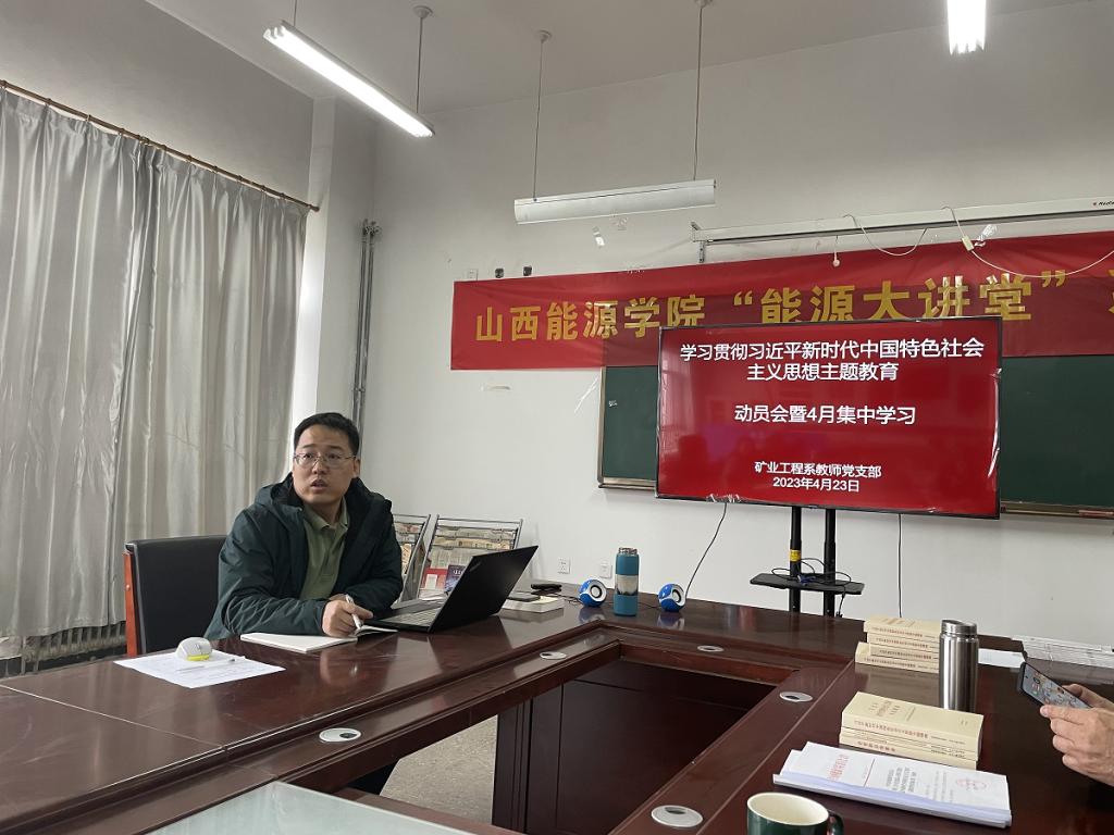 4月23日,矿业工程系党总支组织全体教职工党员召开学习贯彻习近平新时代中国特色社会主义思想主题教育动员会。系党总支书记周根立作了动员讲话,会议由教师党支部主题教育学习领导小组组长潘瑞凯主持。