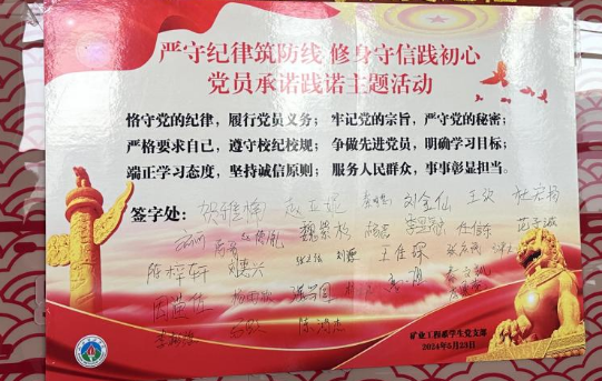 5月23日,矿业工程系学生党支部在学校图书馆红色书房开展了5月党纪学习教育集中学习会议和5月主题党日活动。本次活动主要学习了《中国共产党纪律处分条例》(新修订)第六章和第七章的内容并进行了案例研讨。另外围绕我系学风、班风、考风建设,开展了“严守纪律筑防线 修身守信践初心”党员承诺践诺主题活动。