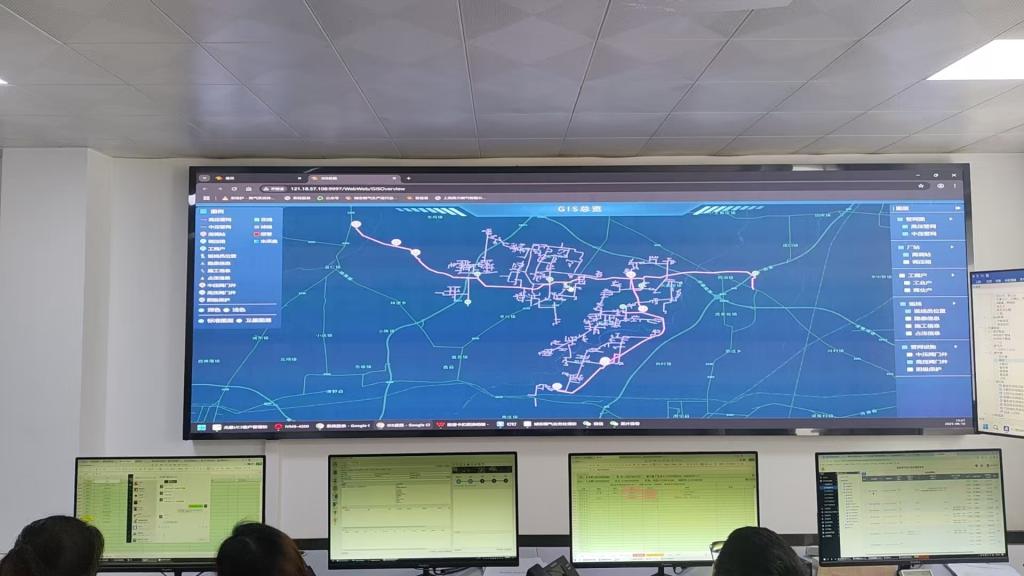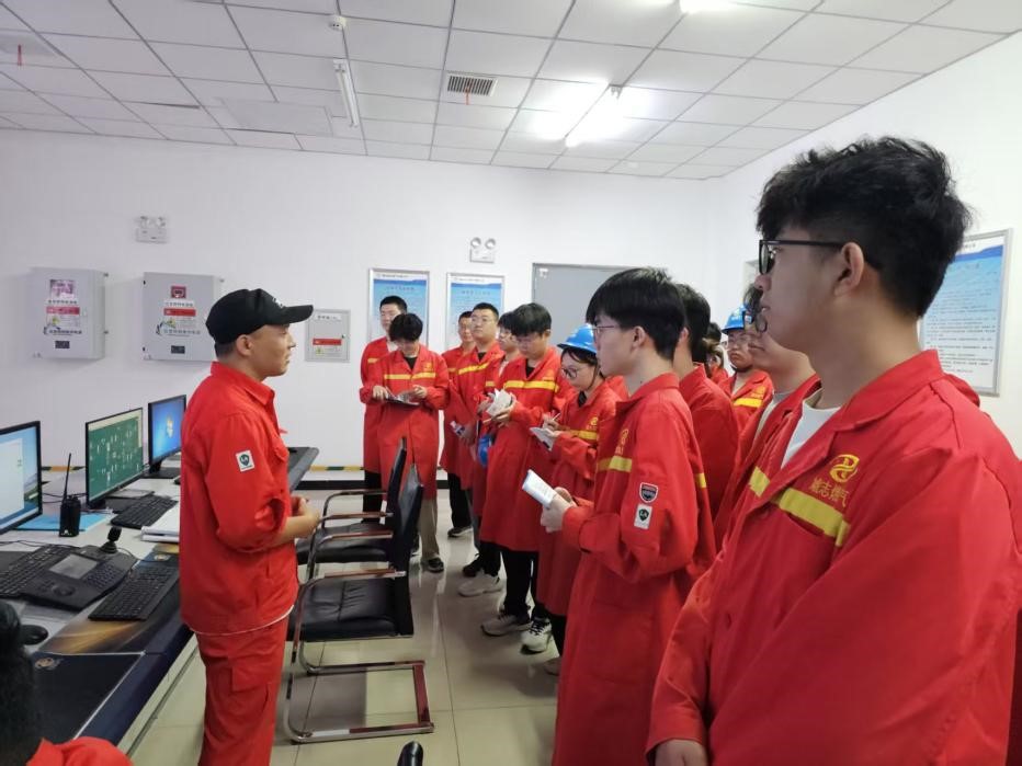 在实习期间,学生们依次参观了燃气输配场站总控调度室、液化石油气装卸场站、燃气输配门站、LNG液化工厂、LNG储备库以及油气开发与地面集输场站等。在总控调度室,学生们被“虓志燃气一体化智能监控平台”的巨大屏幕所吸引。工作人员现场演示了该系统的三维动态监测功能,利用GIS系统实时监控全站设备状态,并实现了各场站气量情况、巡线员轨迹及里程情况等数据的毫秒级回传。城镇供气管网的拓扑图清晰地展现在屏幕上,引起了学生们的惊叹。