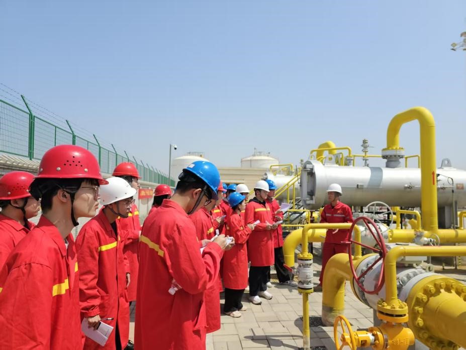 在燃气输配门站的工艺区,学生们实地考察了调压器、流量计、气液联动阀、伴热水套炉等天然气集输重要组成设备。通过现场工作人员的详细讲解,学生们深入了解了这些设备的工作原理及其在燃气输送系统中的作用。特别是在场站调压区,学生们学习了长输天然气如何在燃气输配门站通过多级降压,得以达到居民用气的条件。