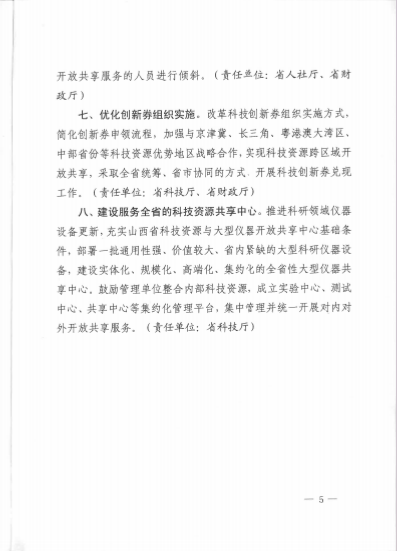 山西省科学技术厅 山西省教育厅 山西省财政厅 山西省人力资源与社会保障厅 山西省国资委 山西省市场监督管理局 关于印发《关于加快推进全省大型科研设施与仪器等科技资源开放共享的若干措施》的通知.pdf