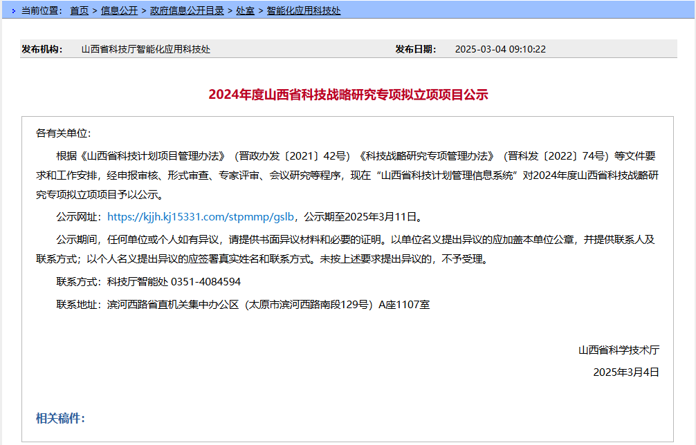 3月4日,山西省科技厅发布了“2024年度山西省科技战略研究专项拟立项项目公示”,bat365官网获批1项一般项目获批立项。