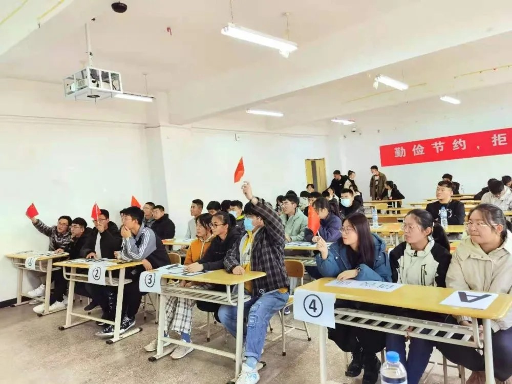 第一环节结束后,由得分最高的八个小组依次按一到八号就坐,共同进入到第二个环节。抢答不仅仅需要的是个人的知识储备,最重要的是努力抓住机会。各个队伍在抢答时快速举起手中的红旗,珍惜每次的答题机会。答对者兴高采烈,答错者仍不气馁,红旗在手,机会我有,激烈的抢答过程令现场的所有人都热血沸腾。