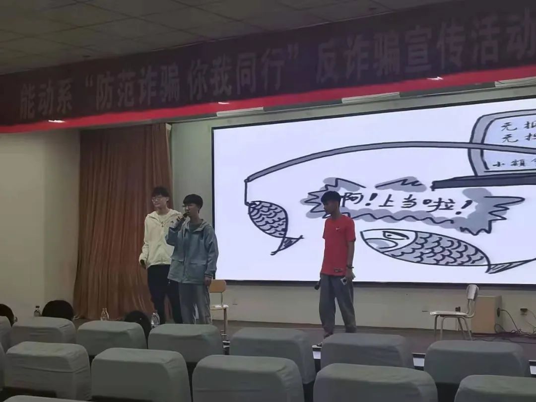 网络诈骗通常指为达到某种目的在网络上以各种形式向他人骗取财物的诈骗手段。犯罪的主要行为、环节发生在互联网上的,用虚构事实或者隐瞒真相的方法,骗取数额较大的公私财物的行为。为提高学生自我防范意识,了解诈骗形式,能够在遇到诈骗行为时采取适当的措施规避风险,在紧急情况下能够自救和互救,共同创造平安、和谐的校园。能源与动力工程系针对目前常见的几种骗术,结合发生在我们身边的真实案例,特此开展以“防范诈骗,你我同行”为主题的反诈骗宣传活动。