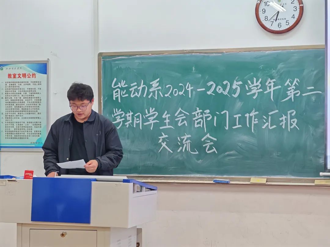 为持续加强能源与动力工程系学生工作队伍建设,推动学生组织队伍管理水平不断提升,全方位增强学生会干部的服务理念和工作效能,3月13日,能动系分团委学生会部门负责人工作汇报交流会于笃学楼110教室举行。出席本次会议的有系党总支副书记杨刚、团委学工办副主任贾文娟、专职辅导员高志超以及系学生会负责人。