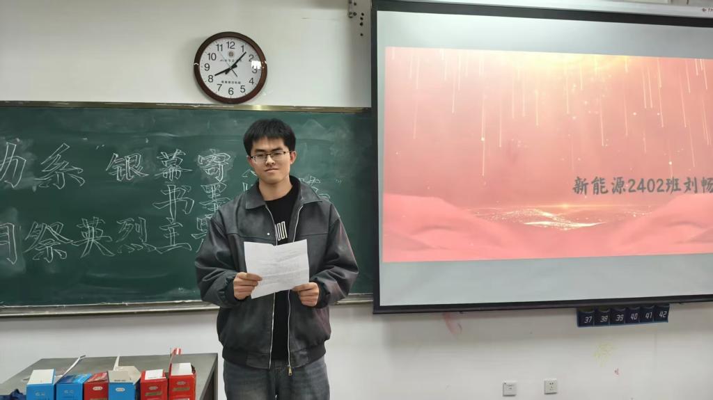 清明节,承载着慎终追远的民族传统,也是缅怀英烈的重要契机。往昔,无数英烈为国家和人民舍生忘死,留下饱含信念的家书,这些家书也成为红色影视作品的创作源泉。为此,能源与动力工程系分团委学生会于2025 年4月1日举办“银幕寄志,书墨怀英——清明祭英烈”主题活动,通过展播影视、诵读家书、宣讲故事等形式,让学生铭记历史,传承红色基因,厚植爱国情怀。