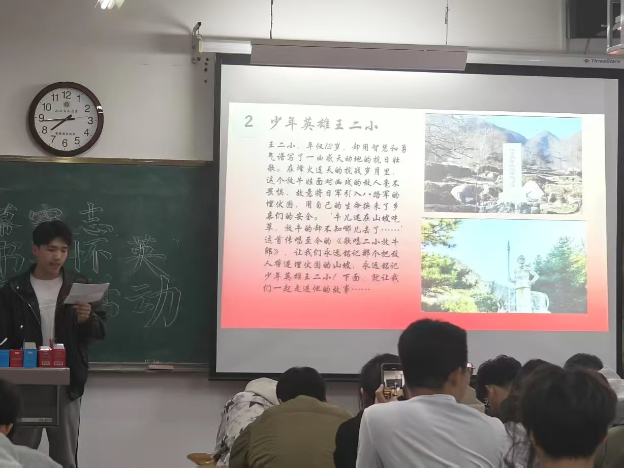 活动伊始,主持人展播经典红色影片片段。宏大的战争场景、鲜活的人物形象,让同学们直观感受到革命先烈们为国家独立和民族解放不惜牺牲的伟大精神。