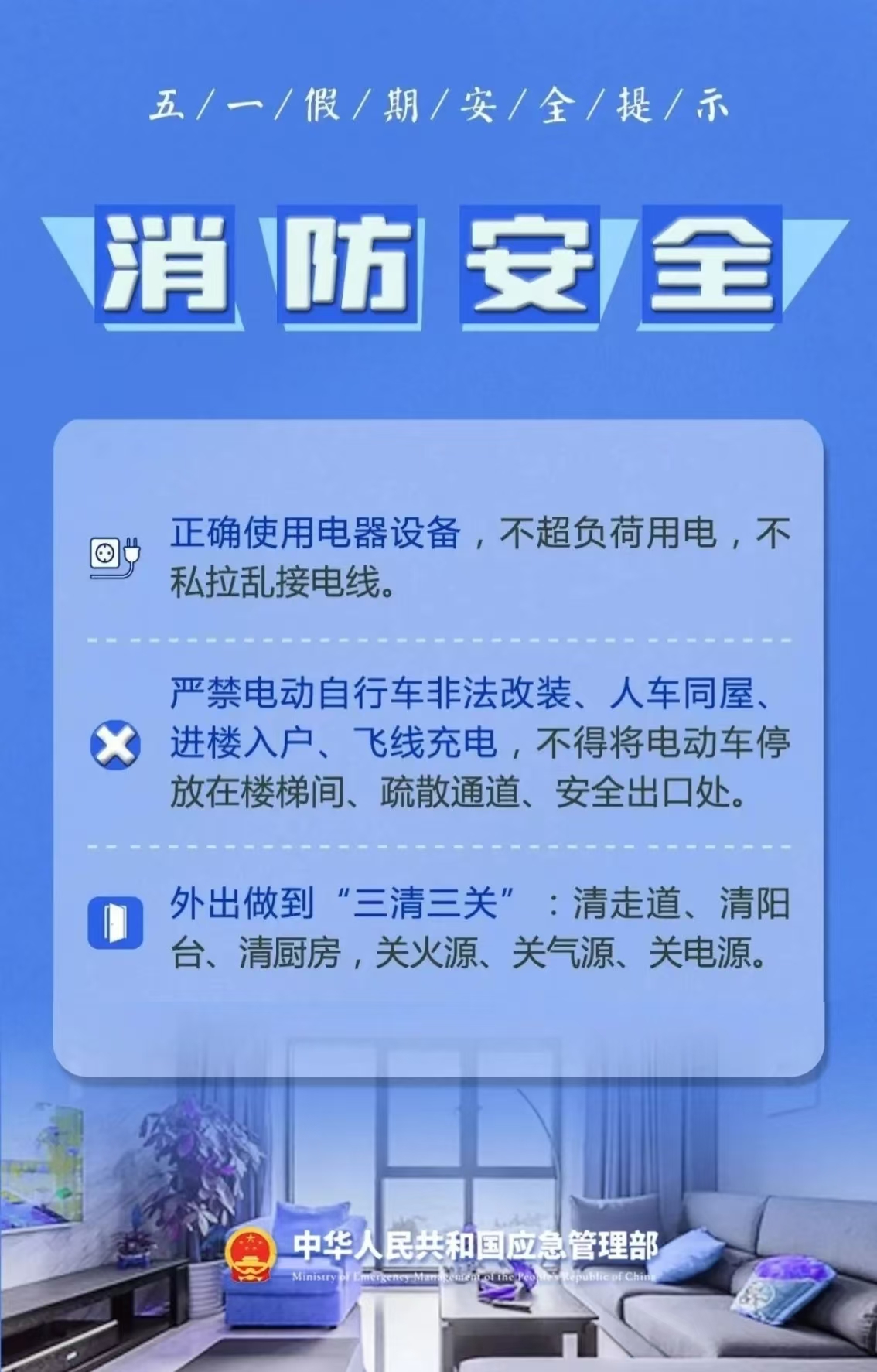 “五一”假期选择留校的同学,请保管好宿舍财物和注意用电安全。