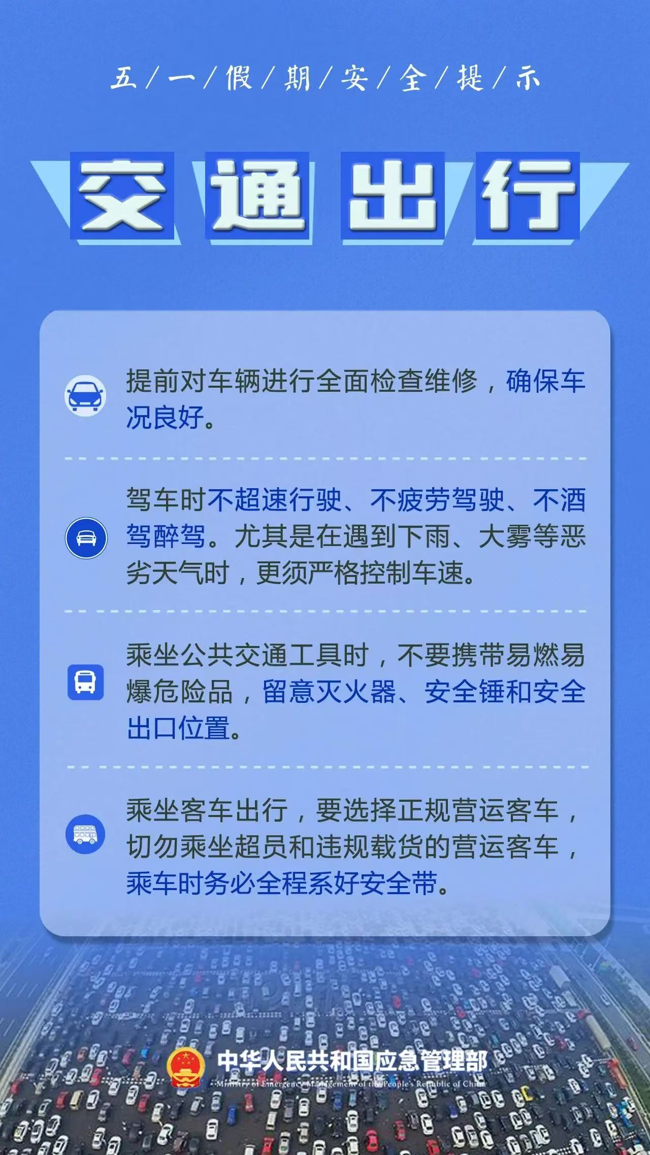 远离危险水域。五一假期气温逐渐升高,切勿私自前往水库、池塘、河流、湖泊等危险水域。即使水位较浅,也可能因水草、淤泥或暗流导致危险。