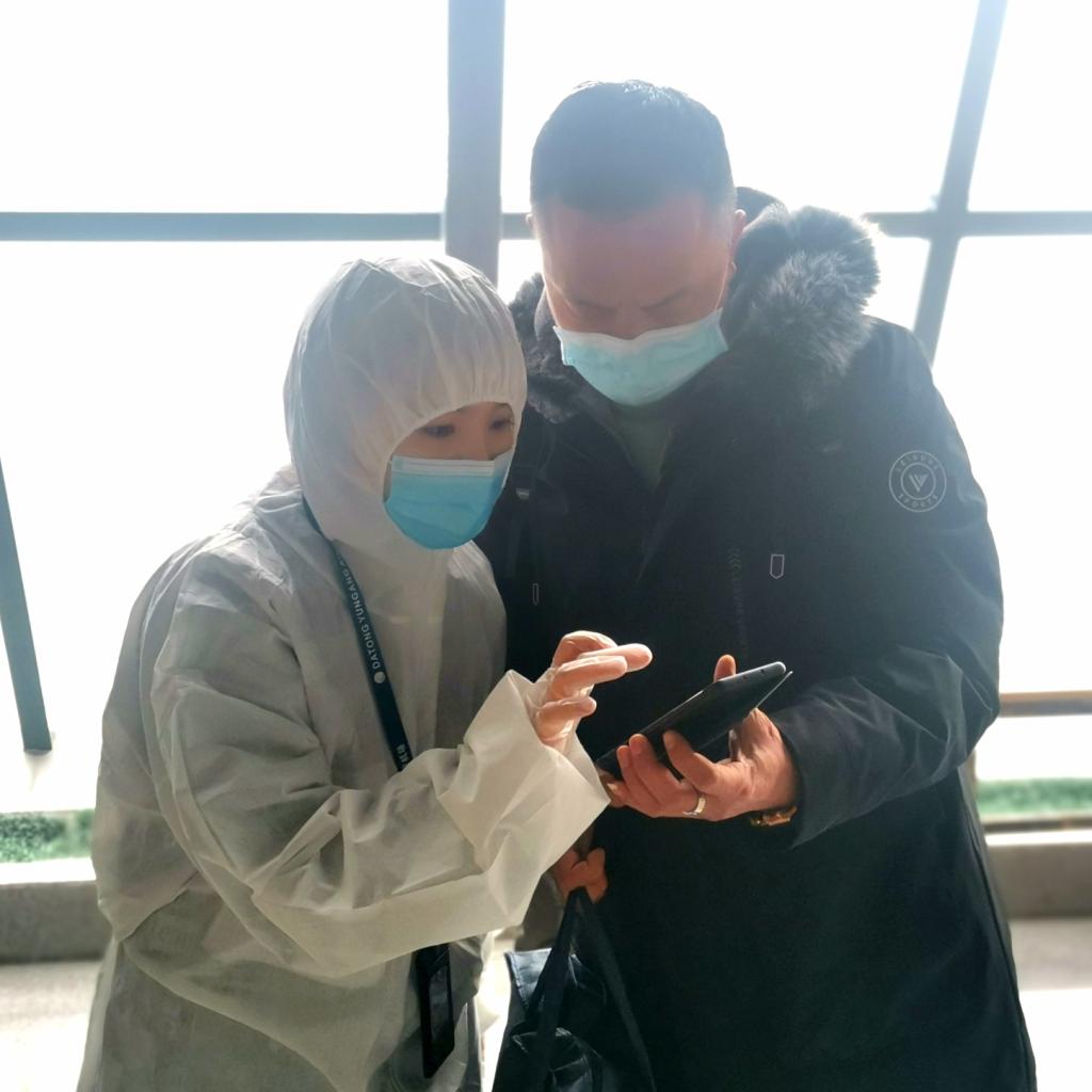 在志愿活动中,朱文丽同学穿着防护服,检查每位旅客健康码和行程码,对于来自中高风险地区的旅客协助他们登记信息,并且帮助机场工作人员核对表格内容,检查核酸检测报告并维持秩序。朱文丽说:“穿上防护服时,我心里十分好奇和兴奋,好奇穿上防护服是否像新闻报道中说的闷热沉重,难以行动;也兴奋我终于能够作为防疫志愿者为大家服务。短短几个小时的志愿活动,我切身体会到了抗疫工作者的辛苦与不易。”