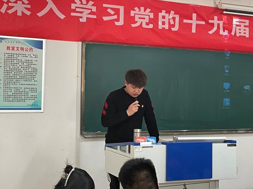 活动的最后,王强老师强调作为青年党员和学生干部,必须要全面贯彻习近平新时代中国特色社会主义思想;要时刻铭记并做到十个坚持,坚决树牢“四个意识”、坚定“四个自信”、做到“两个维护”;要坚持从群众中来,到群众中去,时刻不忘全心全意为人民服务的宗旨,不断提高自己各方面的素质,自觉接受群众的评议和监督,努力使自己成为一名更加合格的共产党员。