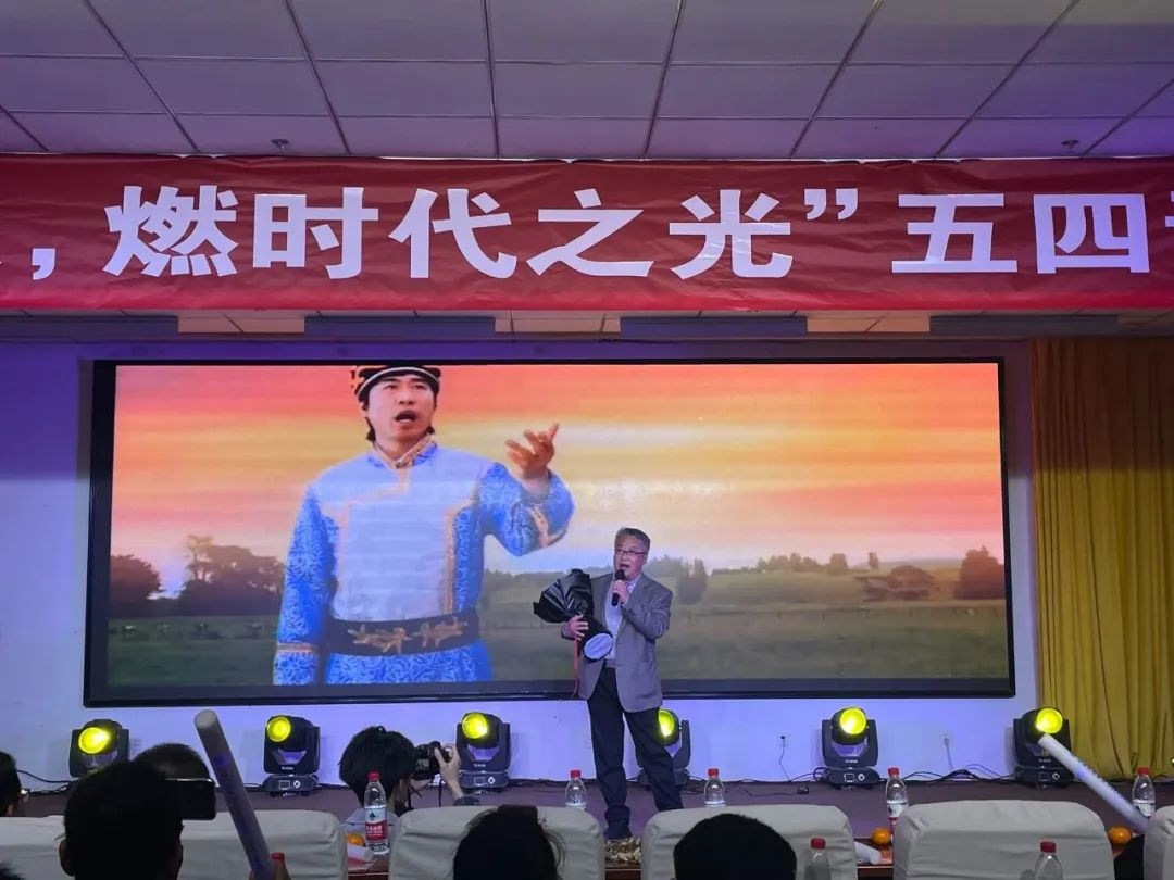 蓝蓝的天上白云飘,白云下面马儿跑,挥动鞭儿响四方,百鸟齐飞翔,韩书记献曲激励青年学子。