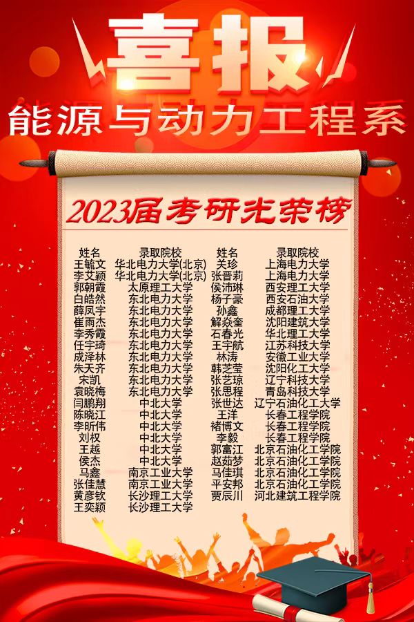 风雨兼程砺意志,守得云开见月明。随着全国研究生入学考试复试结果的陆续公布,我系考研录取喜报频传,共有四十三名毕业生顺利考取硕士研究生!恭喜以下同学获得佳绩!