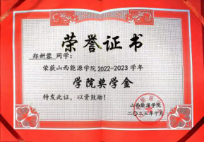 2022-2023学年 获“学院一等奖学金”