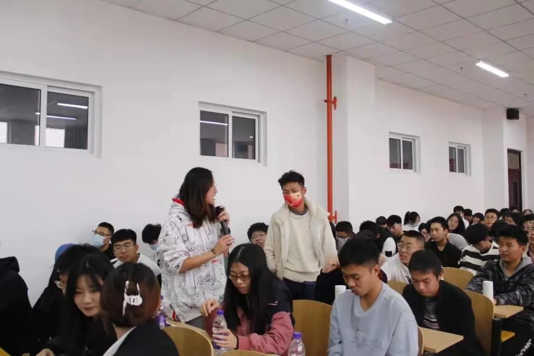 在各位学生代表发言完毕后,由在场的同学对有关四、六级的相关知识和学习技巧进行提问,优秀学生代表做出了现场解答,并对同学们的英语学习规划提出可行性建议。