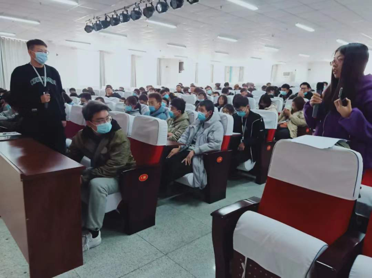 在各位学生代表发言完毕后,由在场的同学对有关四、六级的相关知识和学习技巧进行提问,优秀学生代表做出了现场解答,并对同学们的英语学习规划提出可行性建议。