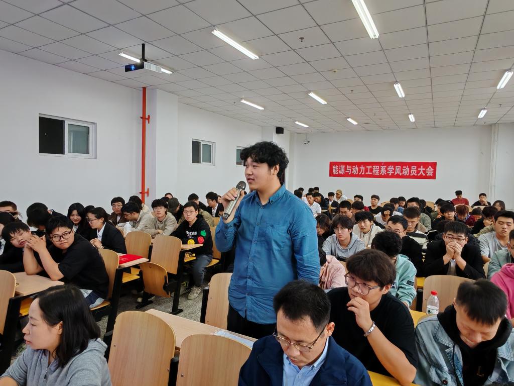 为营造更加优良的学习氛围,提升我系学生的综合素质和竞争力,能源与动力工程系于9月29日在综106教室举行了本学期的学风动员大会,能源与动力工程系主任侯红、党总支副书记杨刚、副主任郭永红、副主任张传达、团学办、教科研办、专职辅导员、专职组织员、学生党支部、学生会干部和班干部参加本次会议。会议由党总支副书记杨刚主持。