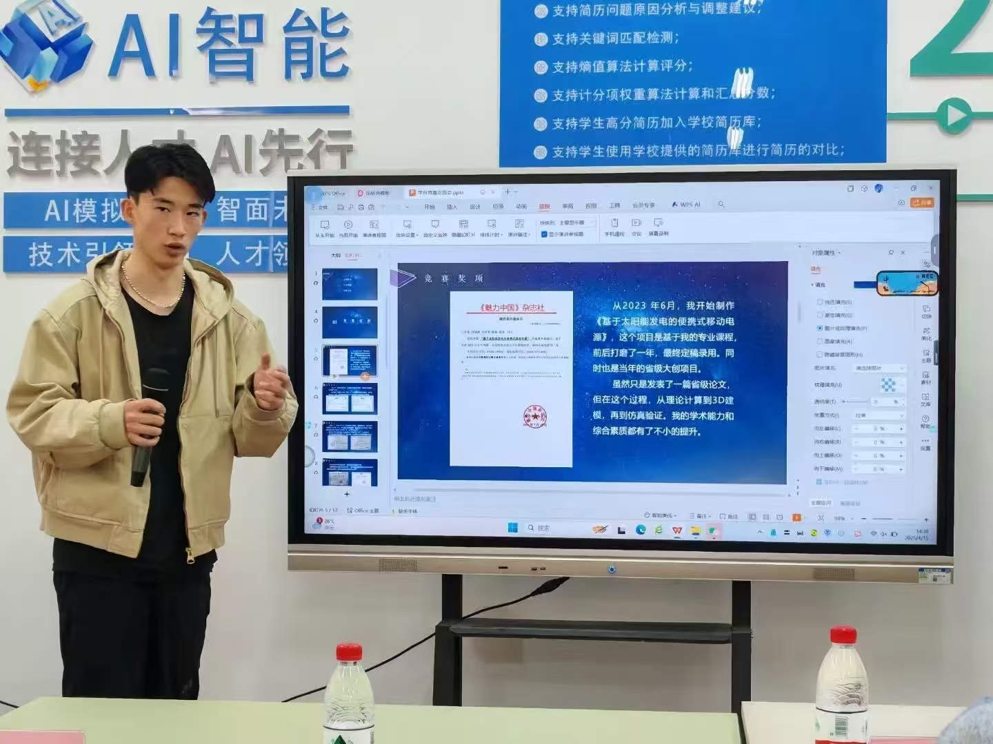 王梓豪以《基于太阳能发电的便携式移动电源》项目为切入点,剖析从理论建模到实物验证的完整链条。他强调跨学科协作的重要性,分享如何在物理学术竞赛中与不同专业队友协同作战,最终斩获全国三等奖。"破圈交流是创新的催化剂,自信表达是突围的利刃",他的话语点燃了现场学子的探索热情。