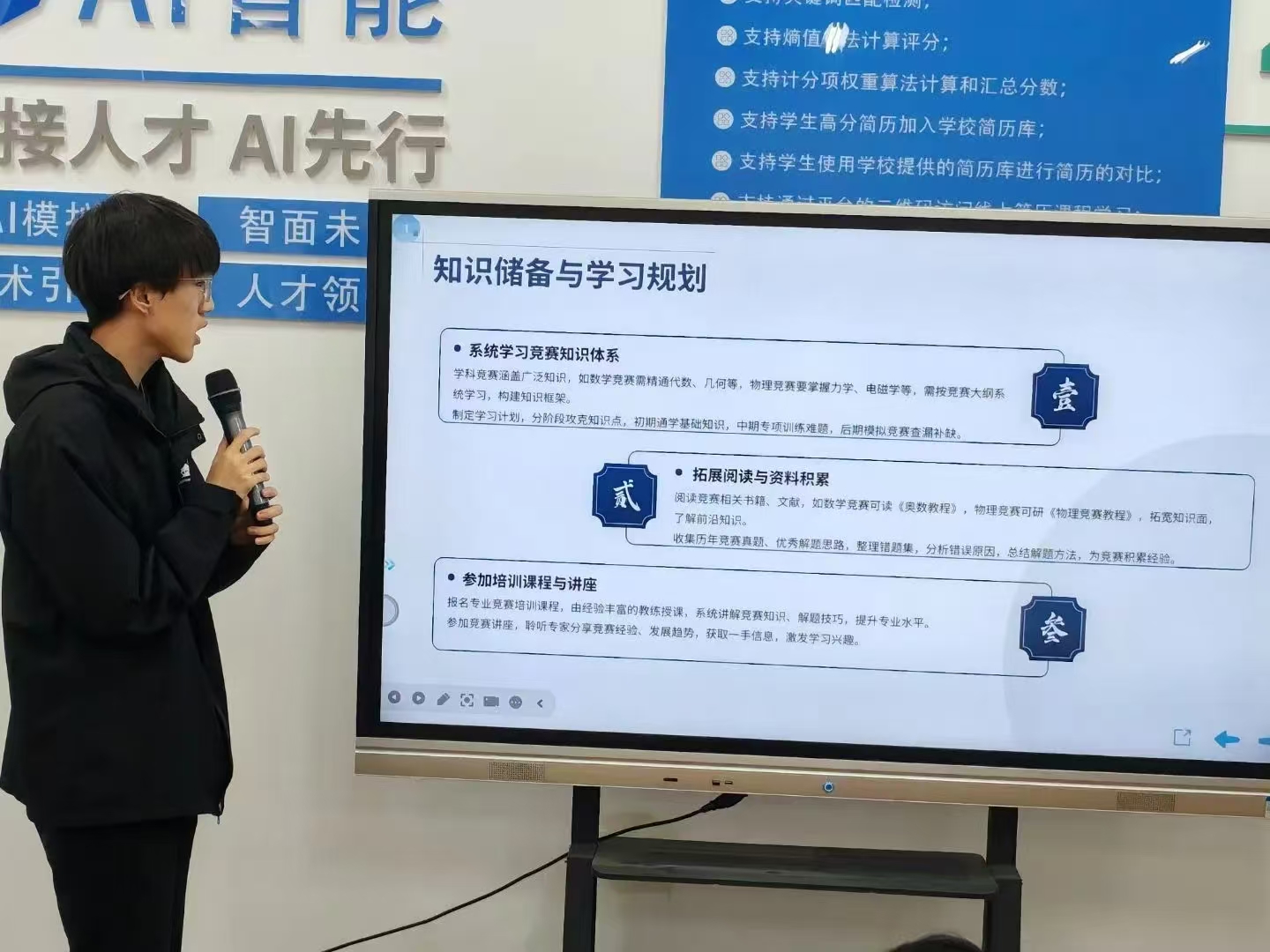 面对同学们抛出的现实难题,三位分享者以亲身经历为镜:制定阶段性目标、日常多关注行业最新动态、自主学习实用型软件、多参加各类竞赛场景训练……现场掌声此起彼伏。