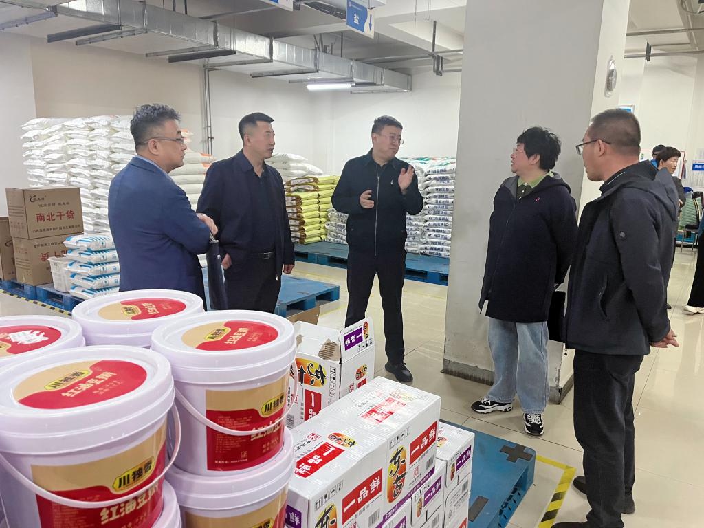 座谈会结束后,在中北大学后勤管理部陈副部长等人员的陪同下,bat365官网调研团深入食堂进行实地参观。先后参观了物资采购中心、学生食堂及食堂后厨等场所。物资仓库规模大、功能完善、环境干净整洁,学生食堂菜品丰富多样、食品加工操作流程规范等,给调研团留下了深刻印象。