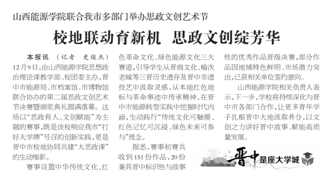 山西青年报报道链接: 校地联动解锁思政文创育人新范式https://sxqnb.com.cn/html/sxqnb/20251218/v06.html