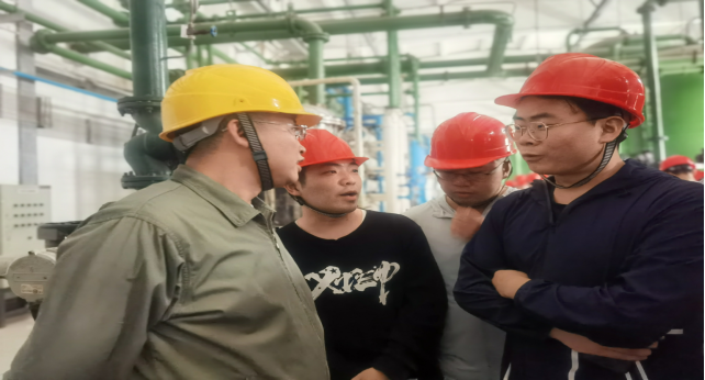 瑞光热电是全国首家采用变温变压物理吸附法碳捕集工艺从发电厂排放烟气中捕集二氧化碳的能源企业,一个供热期减排二氧化碳约4.5万吨。实习指导教师向同学们详细介绍了二氧化碳捕集使用的设施设备及相关原理,并就基于二氧化碳加氢合成绿色甲醇发展前景进行了介绍。