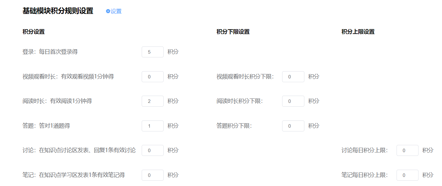 “每日阅读”活动包含导读视频、优质图书、测评等资源类型,精选200余本优质图书及名师视频资源,活动实行积分制,每项行为也具有不同的积分。读者可以进行登录、观看视频、阅读书籍、答题、做笔记、讨论等行为进行自主学习来获得积分(每日新增积分上限为200分,多次观看或阅读的内容不重复计分)。下图为具体的积分规则: