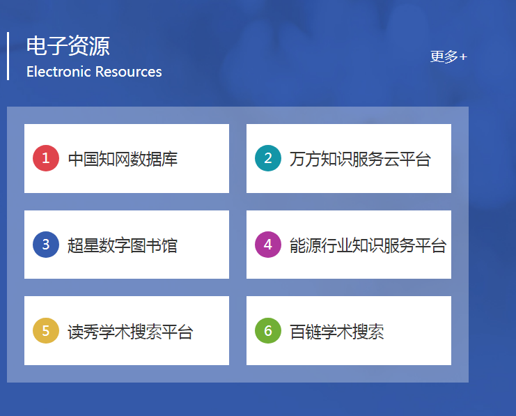 从图书馆首页的“电子资源”栏目找到“能源行业知识服务平台”,点击即可进入。
