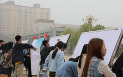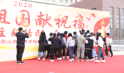 斗转星移七十一载,华夏九州又迎华诞。秋雨绵绵,山能对祖国的热爱依旧强烈。为隆重庆祝中华人民共和国成立71周年,大力弘扬新时代爱国主义精神,展示我院青年积极向上的精神风貌,10月1日上午9时,由院团委主办的“我为祖国献祝福”主题活动在学院南广场隆重举行。活动现场,朗诵比赛与版面设计比赛同步进行。院党委副书记张春有、院团委书记郑文靖同部分系部领导及院、系学生会成员一同参加了本次活动。