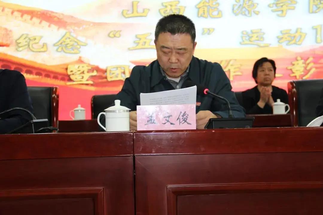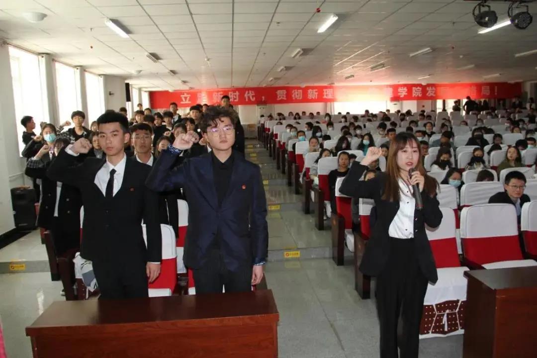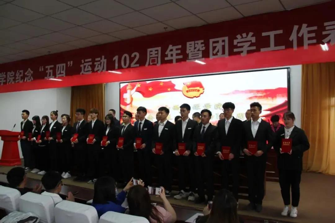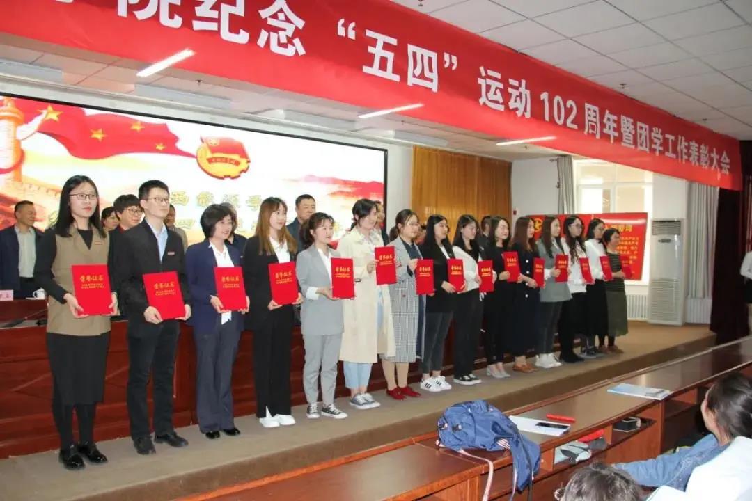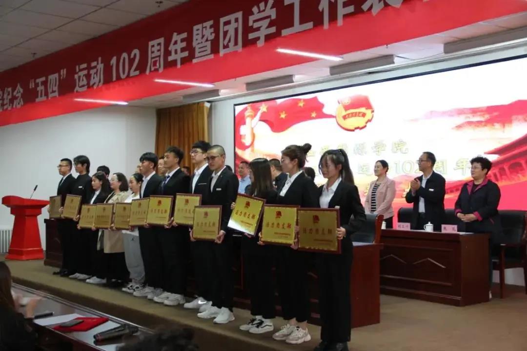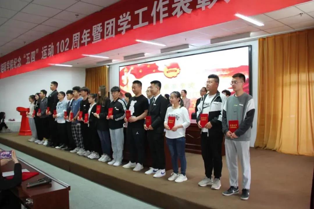 5月6日下午,bat365中文官方网站纪念五四运动102周年暨团学工作表彰大会在综合楼二层东报告厅隆重举行。党委副书记张春有、党委委员副院长孟文俊、党委委员组织部部长韩树霞、党委委员宣传统战部部长张玉福、党委委员学生工作部部长辛书贤、院团委书记郑文靖、教学系部党总支书记、分团委书记、专(兼)职辅导员及获奖学生代表、新发展的团员等参加了大会。本次会议由孟文俊副院长主持。
