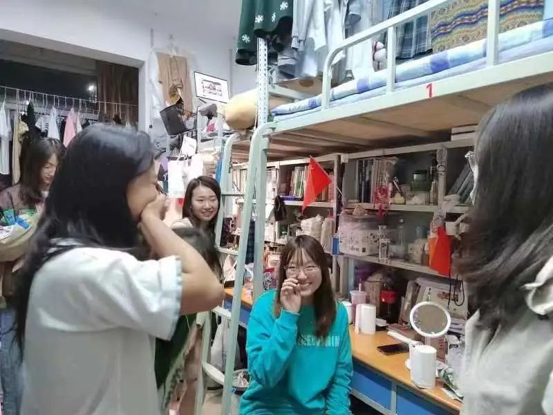 走进宿舍,和学生友好交谈