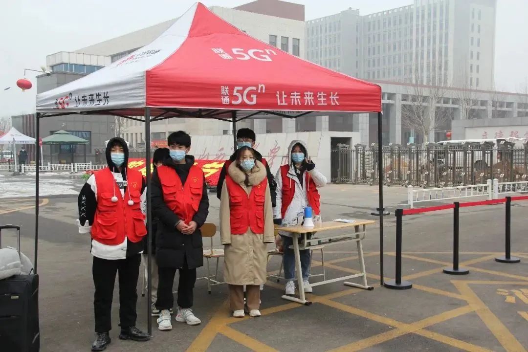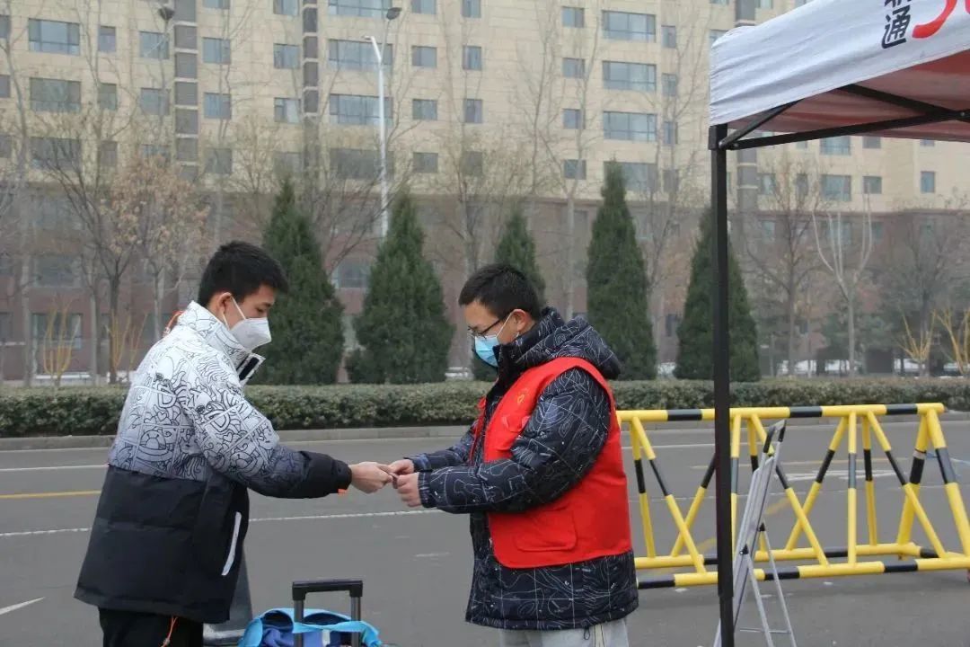 寒风凛冽中有志愿者们在校门口迎接归校心切的学子,积极引导学生进入校园,给寒假归来的山能学子送上了一缕温暖。