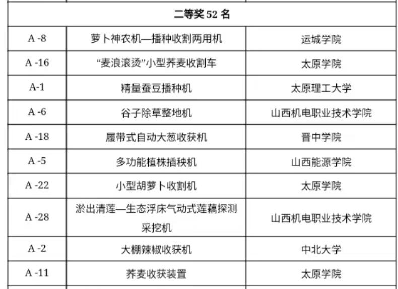 王欣楠同学带领的团队作品“多功能植株插秧机”凭借独特的构思和出色的表现荣获二等奖(山西赛区),其在机械结构创新等方面表现突出,获得了评委们的充分肯定