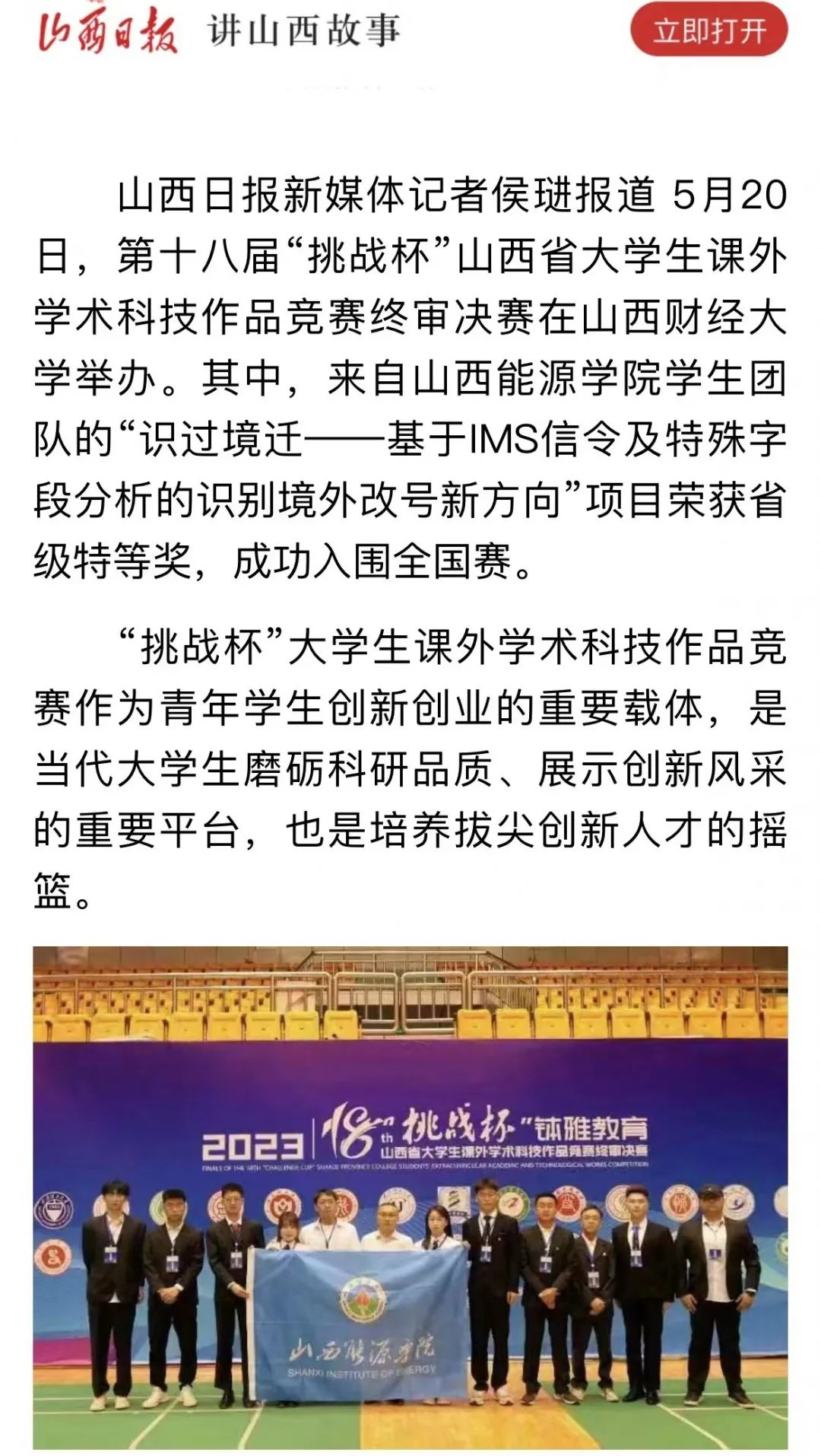 5月20日,第十八届“挑战杯”山西省大学生课外学术科技作品竞赛终审决赛在山西财经大学举办。bat365官网推荐的10件作品中有5件进入终审决赛,10件推荐作品全部荣获奖项,其中bat365官网参赛项目“识过境迁——基于IMS信令及特殊字段分析的识别境外改号新方向”荣获省级特等奖,成功入围全国赛。进入终审决赛作品数及特等奖作品获奖数均刷新历史记录。
