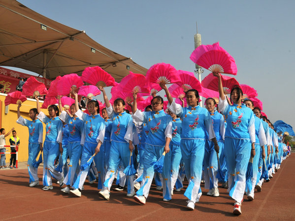 各代表队退场后,八个系部的表演以及院团委青春朝气的大型团体操将现场气氛推向高潮。表演结束后,运动会各项比赛正式开始。运动场上,健儿们顽强拼搏,奋勇争先,呈现了bat365中文官方网站师生积极向上的精神风貌。