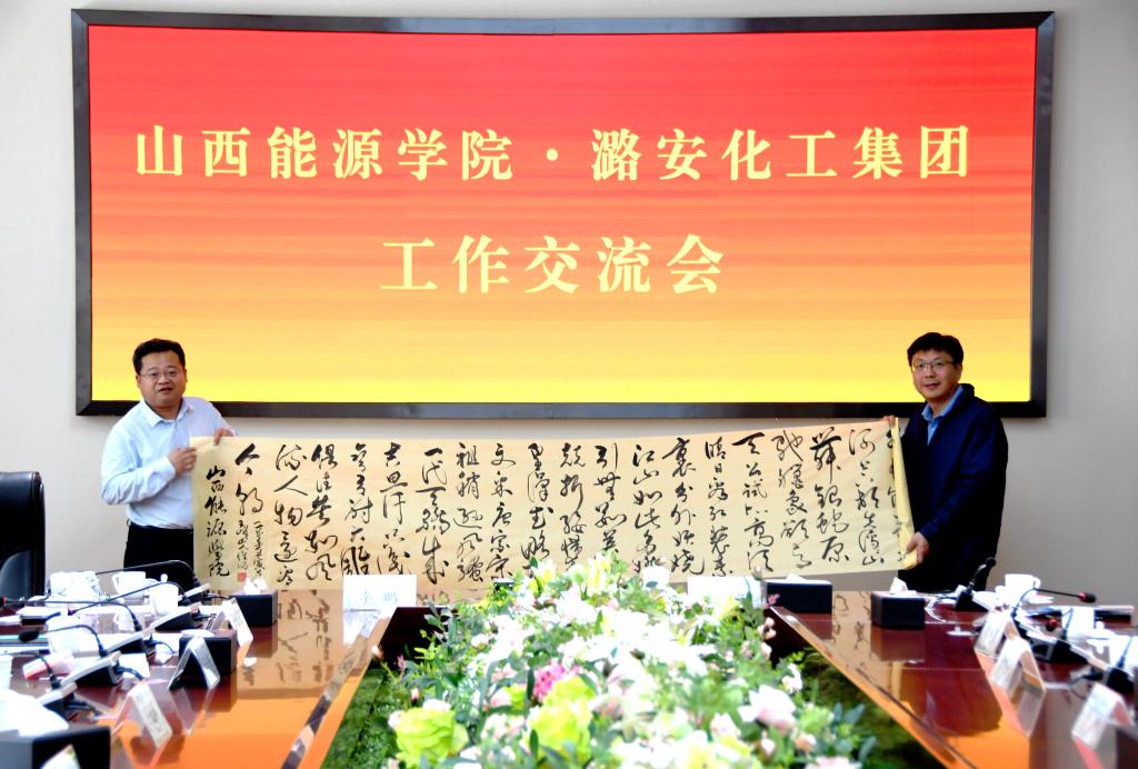 会后,冯国瑞副院长(主持行政工作)在与会人员的共同见证下,代表学校向潞安化工集团赠送了bat365官网教师创作的书法作品。
