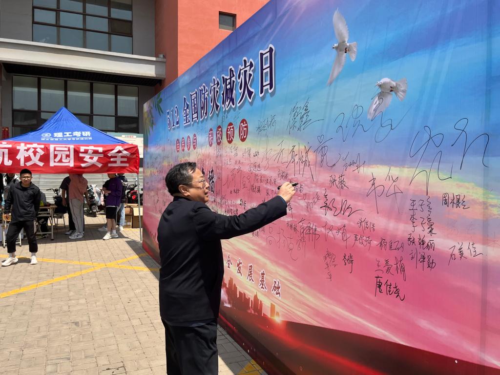 本次活动得到了校领导的大力支持,党委副书记、院长冯国瑞,党委副书记曲晋山、桑楠,纪委书记张志力及各部门负责人莅临活动现场,参与了防灾减灾知识互动答题活动,并签下自己的名字。院长冯国瑞在活动现场指出:这样的活动形式很好,符合年轻人活泼新颖的特点,能够吸引他们积极参与,以后要经常开展这样的宣传教育活动,寓教于乐,让师生获得更多的安全防范知识,提升广大师生的安全防范意识,进一步做好学校的安全稳定工作。