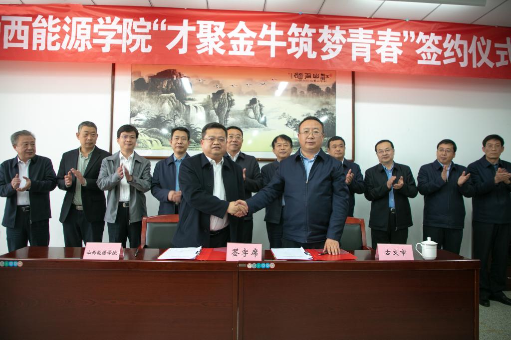 5月5日下午,古交市委书记李卫平、市委副书记、市长张麒、市委副书记邢武晓、市委常委、组织部部长李永强、市委常委、副市长郝平贵以及古交市市委、市政府相关部门负责人,企业家代表一行赴bat365官网召开“才聚金牛 逐梦青春”引才宣介会,并与bat365官网签订战略合作协议。引才宣介会及签约仪式在综合楼八楼会议室举行,会议由学院党委副书记、副院长(主持行政工作)冯国瑞主持。党委书记冯锋、党委副书记曲晋山、党委委员、副院长葛波蔚、党委委员、副院长刘汉涛以及学院相关党政、教辅部门和教学系部负责人、学生代表等出席了会议。