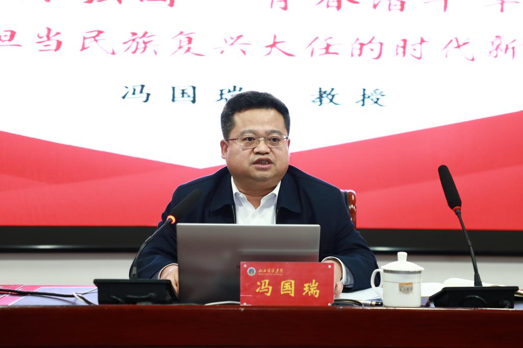 2023年4月4日下午,冯国瑞副院长(主持行政工作)在综合楼二层报告厅以《能源强国 青春谱华章 做担当民族复兴大任的时代新人》为题为师生讲授开学第一课。各党总支书记、直属党支部书记、各部门负责人以及思政教师、辅导员、组织员、学生代表近200人聆听了这堂课。党委副书记桑楠主持“开学第一课”。