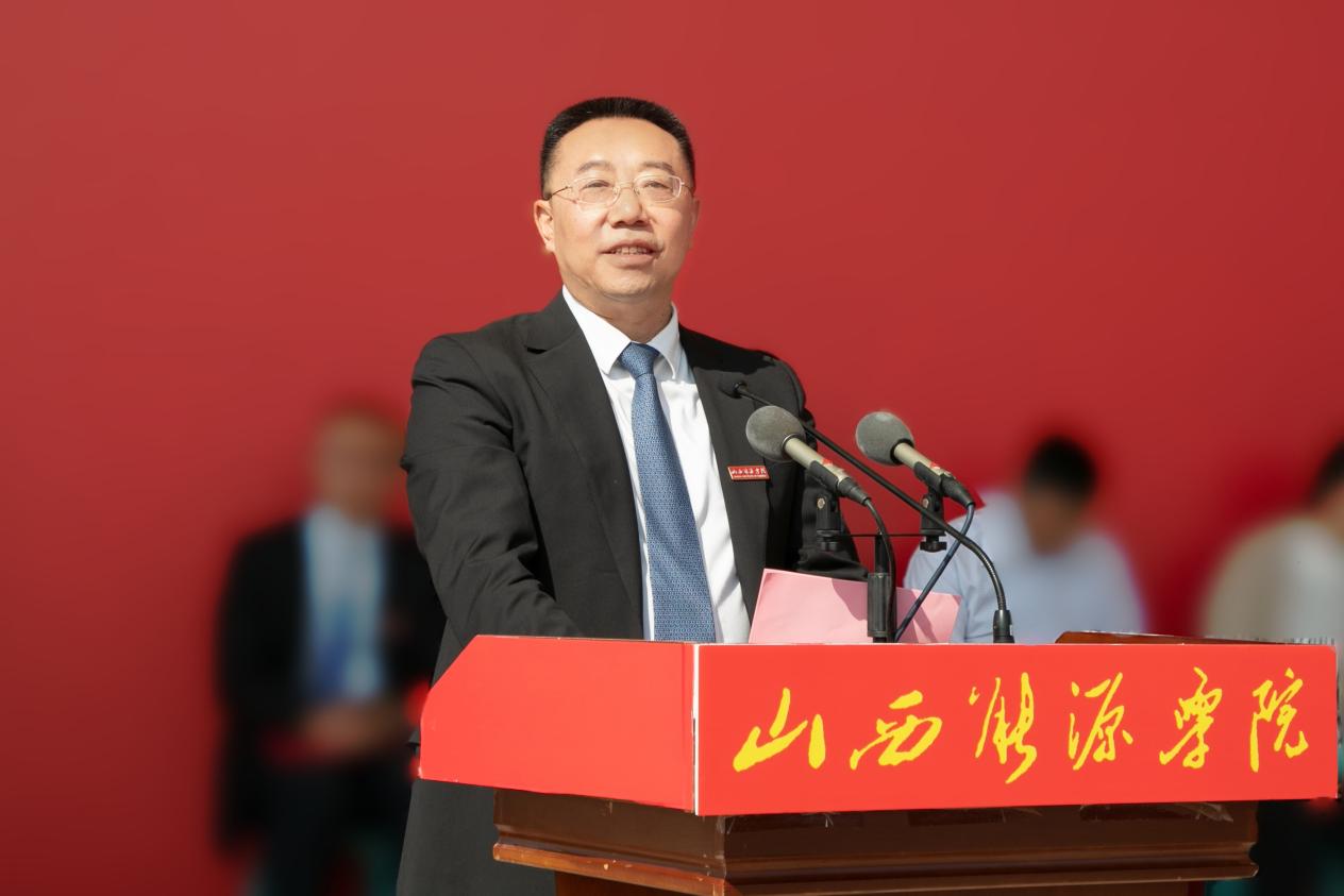 冯锋书记首先向各位新同学的到来送上热烈的欢迎和衷心的祝贺,表示学校已经做好迎接大家到来的各项准备——近期启用的28000㎡的产学研实践中心宽敞明亮、设备先进,刚刚新建的能源文化广场郁郁葱葱、景色宜人,300㎡的生活超市物美价廉、应有尽有,羽毛球场、乒乓球场翻新整修、增添设备,数字化、智能化的图书馆大门随时敞开,还有今年新引进的100名各类特聘教授、博士及专任教师为大家授课。期待新同学们能够喜欢这里,在这里学有所获,学有所成。