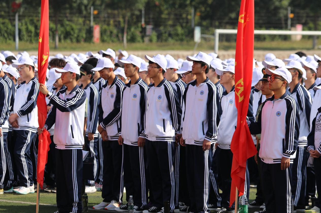 上午9时,全体师生沐浴着晨光,迎国旗、升国旗、奏唱国歌,大会在雄壮的中华人民共和国国歌《义勇军进行曲》中拉开序幕。