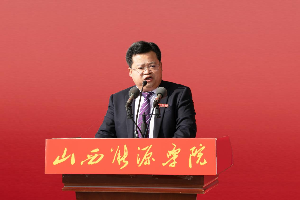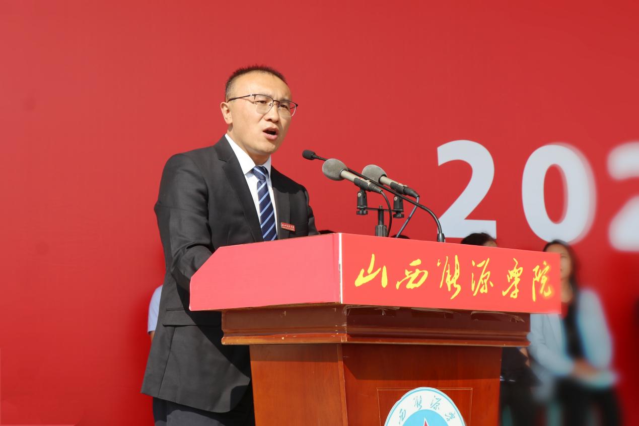校党委书记冯锋代表学校党政和全体师生员工向各位新同学的到来送上热烈的欢迎和衷心的祝贺,向一直支持学院军训的晋中武警支队表示亲切的问候和诚挚的感谢。他表示,十余载的辛勤耕耘,大家收获了属于自己的星光之路,踏进了大学的校门。学校也用特有的方式做好了迎接大家到来的准备,期待大家能够喜欢这里,在这里学有所获,学有所成。冯锋书记从“奋斗”“创新”“思辨”三个方面对新生们提出了期待,希望大家能够成为辛勤奋斗、与时代同行、会独立思考的人。最后,冯锋书记以“勤奋不设时限,伟大不因天赋,成功不走捷径,探索不问终点”为寄语,勉励全体新生朝着梦想出发,开拓属于自己的星光之路。